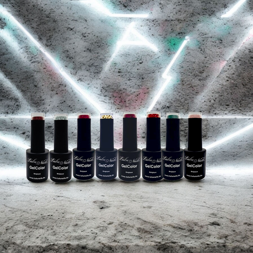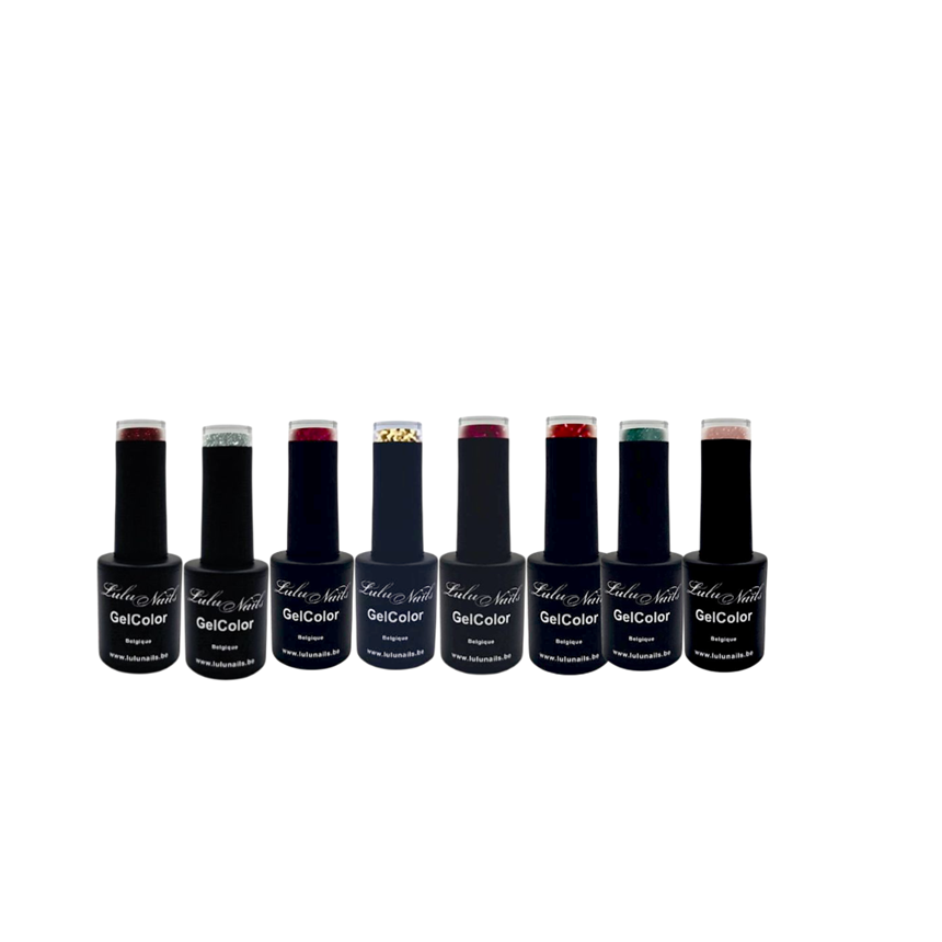 Brillez avec élégance Le Coffret Scintillant Élégance – LuluNails réunit 8 teintes luxueuses aux reflets éclatants. Formule HEMA FREE & TPO FREE, tenue 3 semaines, qualité professionnelle à prix doux